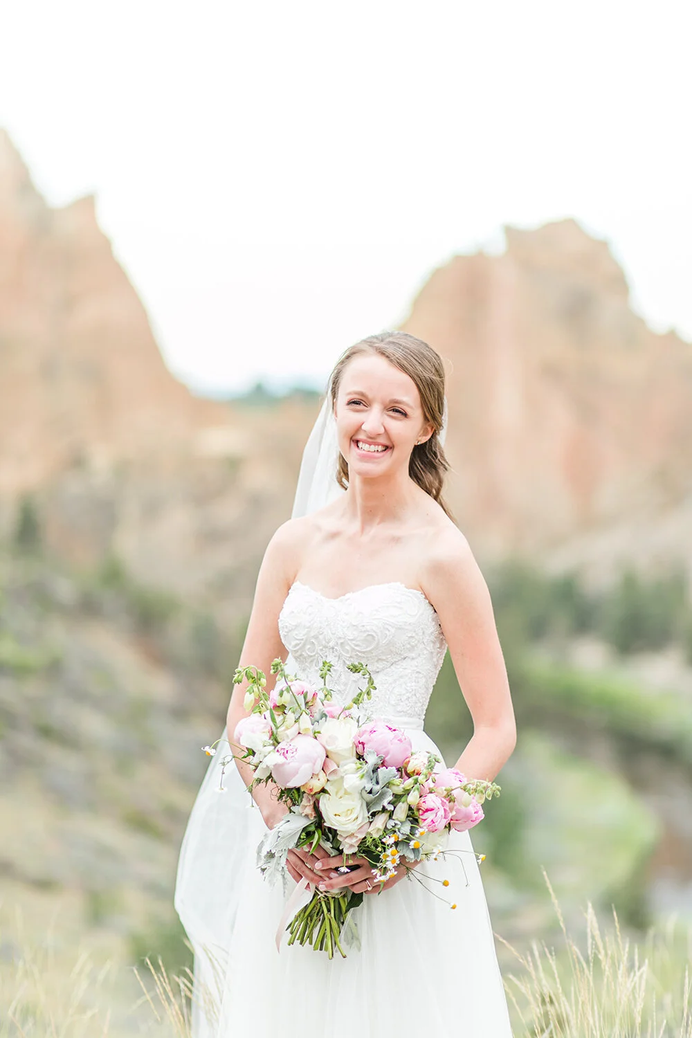 Behind the arbor which was dripping with beautiful flower arrangements, you could see the face of Smith Rock- a place very dear to Dominic and my’s heart ever since we moved to Oregon 6 years ago. Smith Rock is world famous as a rock climber’s paradise and boasts both breathtaking and grueling hiking trails for those who prefer their feet on the ground. Any chance we get, Dom and I will take the 3 hours drive south of Portland to come climb at Smith so I was practically jumping up and down with excitement at the chance to photograph Jess and Nick in such a unique and stunning location.